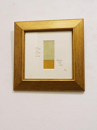 コラージュやアクリルなどを用いて、心の奥の風景を
